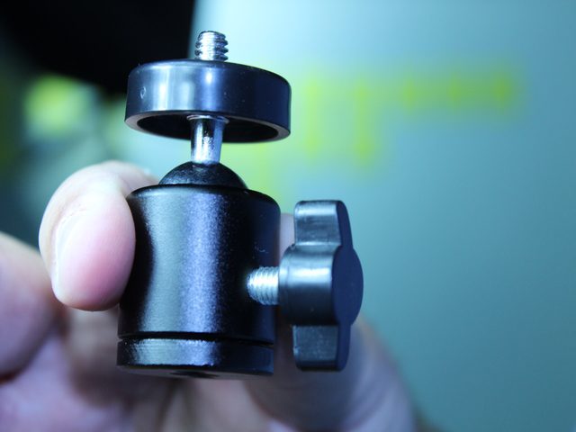 The main attachment that screws into your monopod or tripod is made of metal and feels solid. The top attachment that screws into your camera or video camera is made of plastic but doesn’t have a cheap feeling. The knob that tightens the ball head is also made of plastic.